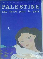 Scope and ContentPoster with an image of a woman holding a dove and the text: Partie Communiste Palestinien. Palestine. Une terre pour la paix