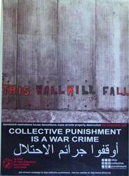 Scope and ContentPoster with an image of a concrete wall painted withe the words This wall will fall and the text: Movement restrictions, house demolitions, mass arrests, property destruction, the annexation wall. Collective punishment is a war crime
