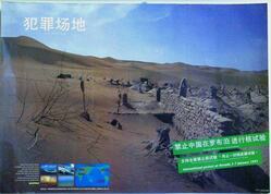 Scope and ContentPoster with an image of the site of Chinese nuclear tests and the text (in Chinese with English subtitles): Scene of the crime. Stop Chinese nuclear tests at Lop Nor in Xingjiang. End all nuclear weapons testing. Support a comprehensive test ban. International protest at Nevada 3-7 January 1991. with details of other counties nuclear weapons testing