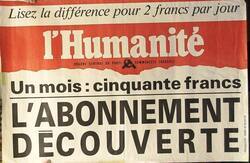 Scope and ContentPoster with the text: Lisez la difference pour 2 francs par jour. L'Humanite. Organe central du parti Communiste Francais. Un mois: cinquante francs. L'abonnement decouverte