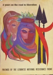 Scope and ContentPoster with an image of two people and the text: 2 years on the road to liberation. Friends of the Lebanese National Resistance Front