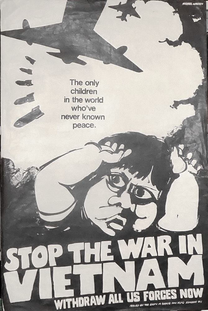 Scope and ContentPoster with an image of a child with planes dropping bombs above and the text: The only children in the world who've never known peace. Stop the war in Vietnam. Withdraw all US forces now!