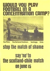 Scope and ContentPoster with an image of soldiers inside the National Stadium, Santiago, Chile and the text: Would you play football in a concentration camp? Stop the match of shame. Say no to Scotland v Chile on June 15