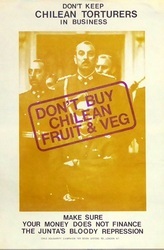 Scope and ContentPoster with an image of General Pinochet and others and the text: Don't keep Chilean torturers in business. Don't buy Chilean fruit and veg. Make sure your money does not finance the Junta's bloody repression