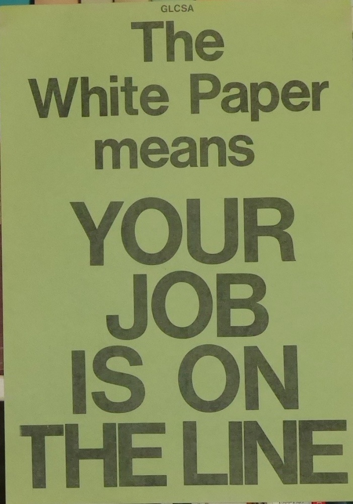 Poster - Greater London Council Staff Association: The white paper means your job is on the line