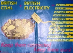 Scope and ContentPoster with an image of a lump of coal and a plug and the text: British Coal + British Electricity = Safety, health, warmth, industry, cooking, hospitals, transport, computers, television, employment, entertainment. Keep them connected. Keep them ours!