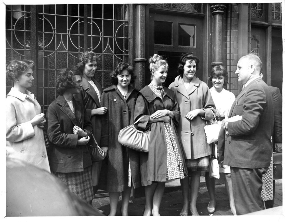 Scope and ContentBlack and white photograph of the original 8 women members of the Clerical and Administrative Workers Union who went on strike to demand recognition at the Automobile Association. Caption on back: AA Birmingham. Crown Pub, Broad Street, The orginal eight who came out on strike. First meeting 15th August 1960. Jean Taylor, Sheila Turner, Marion Rownson, Freda Taylor, Ann Offord, Val West, Christine Williams, Teresa Holland