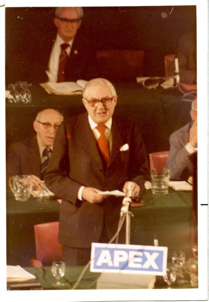 Scope and ContentColour photograph of James Callaghan addressing APEX conference at Eastbourne on 1 May 1978
