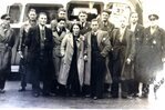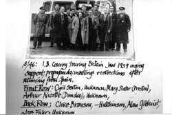 Scope and ContentPhotograph of a photograph showing a group of people beside a bus, with the captions beneath: s/46: I.B. Convoy touring Britain Jan 1939 urging support, propaganda, meetings and collections after returning from Spain.