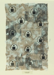 Scope and ContentPaint and linocut prints on newspaper (Paper Piano No 8), with accompanying linocut print