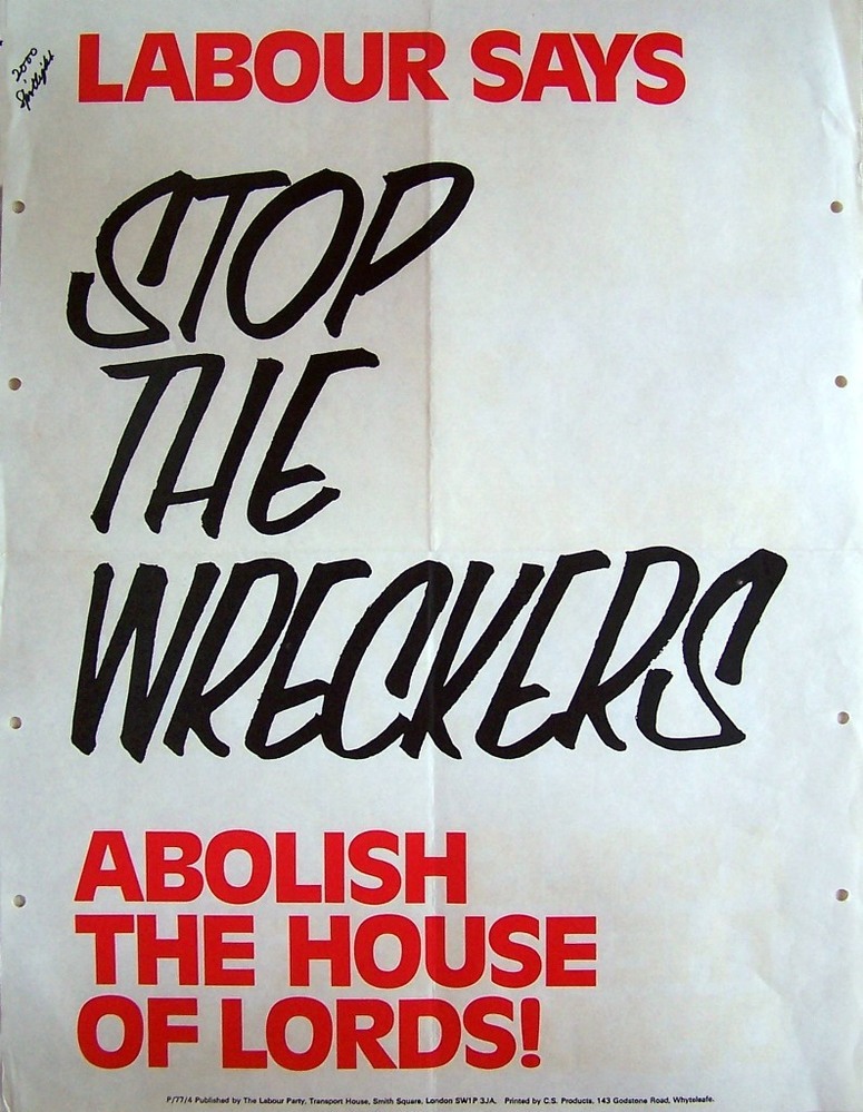 Scope and ContentPoster with the text: Labour says - Stop the wreckers, abolish the House of Lords