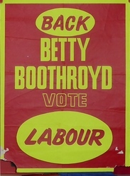 Scope and ContentPoster with the text: Back Betty Boothroyd, vote Labour