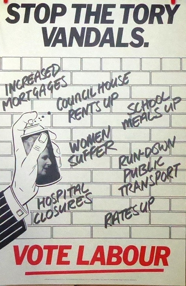 Scope and ContentPoster with an image of hand spray painting Conservative failures on a wall with the text: Stop the Tory vandals. vote Labour