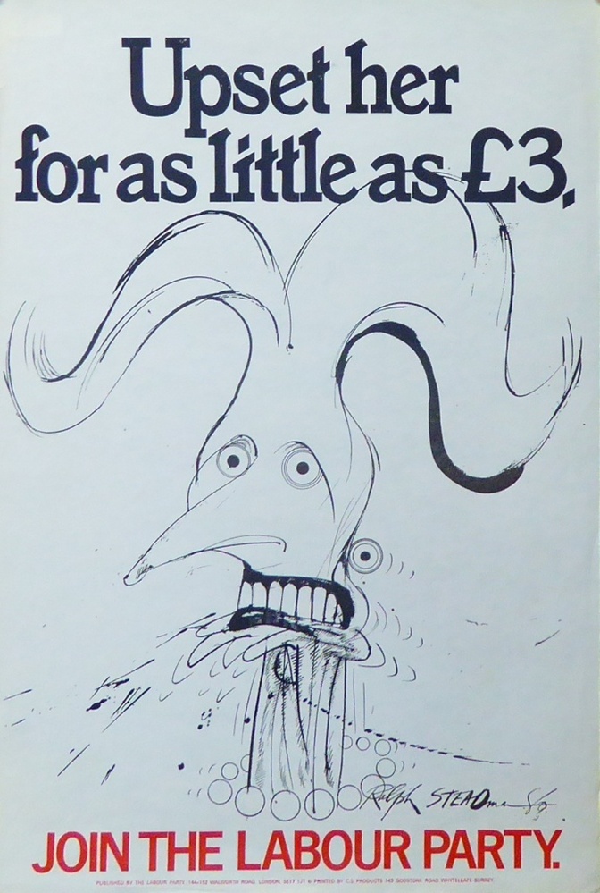 Scope and ContentPoster with a cartoon of Margaret Thatcher by Ralph Steadmand and the text: Upset her for as little as £3. Join the Labour Party