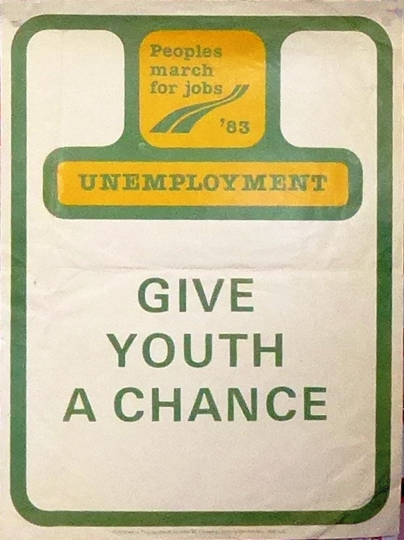 Scope and ContentPoster with the text: Peoples March for Jobs '83. Unemployment. Give youth a chance.