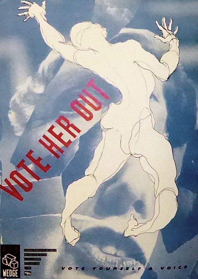 Scope and ContentPoster with a photomontage and the text: Vote her out. Vote yourself a voice