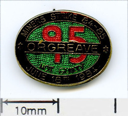 Scope and ContentGreen centre with red 95 superimposed by Orgreave. Black border. Lettering - Miners Strike 84-85 June 18th 1984