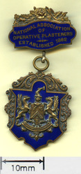 Scope and ContentOrnate Medal and Bar. Base metal gold with Blue enamel. National Association of Operative Plasterers. Established 1862.. ill. on medal Coat of Arms 2 Griffons astride shield.