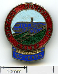 Scope and ContentRed, Green, Pale Blue, Royal Blue, Gold. ASLEF District Council No 1. 100 years. ill. Stephenson's Rocket and Electric . Circle with lower banner. Train.