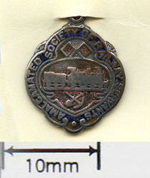 Scope and ContentBlue, Red, Silver. Vintage.  Amalgamated Society of Railway Servants. ill. Steam Train, Flags and tools. REVERSE . ASRS Workers of the World Unite ill Flag in globe.