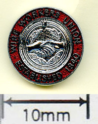 Scope and ContentSilver, Red. Wire Workers Union. Established 1840. ill clasped handshake and laurel leaf border.