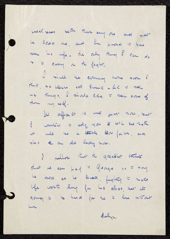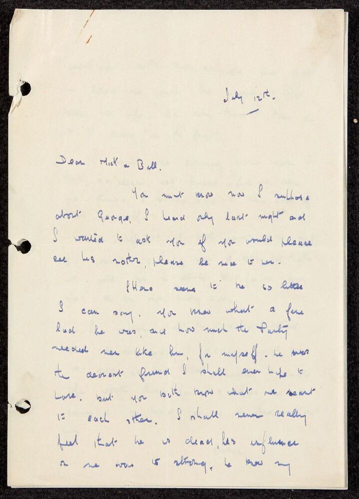 Scope and ContentHandwritten letter from Evelyn Brown to Mick and Bill regarding the death of her husband