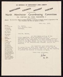 Scope and ContentCondolence letter from the Northern Against Fascism to Mr Cantor