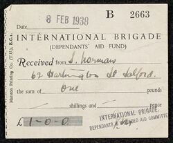 Scope and ContentInternational Brigade (Dependents' Aid Fund) receipt for £1 received from S Norman