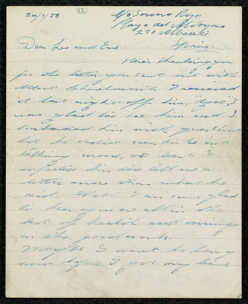 Scope and ContentLetter from Clifford Wolstencroft in Albacete to Les and Eve