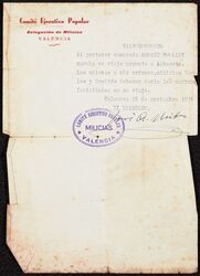 TitleSpanish Civil War: Ernie Woolley, biography file - Safe conduct pass, 16 Nov 1936