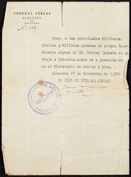 TitleSpanish Civil War: Ernie Woolley, biography file - Safe conduct pass, 17 Nov 1936
