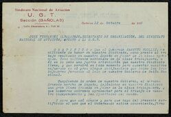 TitleSpanish Civil War: Ernie Woolley, biography file - UGT honorary membership, 12 Oct 1938