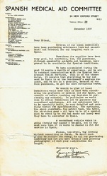 TitleSpanish Civil War: Spanish Medical Aid Committee circular, Nov 1937