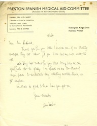 TitleSpanish Civil War: Spanish Medical Aid Committee, Preston branch - letter, 6 Apr 1938