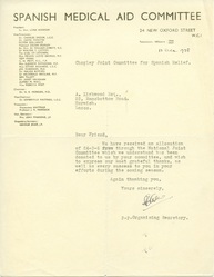 TitleSpanish Civil War: Spanish Medical Aid Committee - letter, 13 Dec 1938