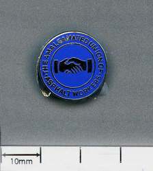 Scope and ContentEnamel badge with an image of clasped hands and the text : The Amalgamated Union of Asphalt Workers.