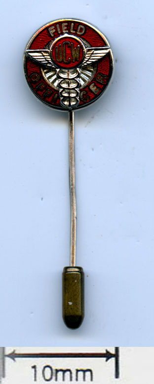 Scope and ContentSilver, Red. Text - UCW Field Officer. Round with Caduceus emblem