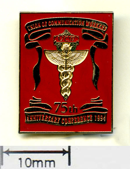 Scope and ContentRed, Gold. Text - UCW Union of Communication Workers, 75th Anniversary Conference 1994. Illustration - Caduceus with banners