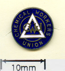 Scope and ContentBlue, White, Gold. Text - CWU Chemical Workers Union. Illustration - white triangle.
