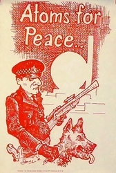 Scope and ContentPoster with a cartoon of armed policeman with a dog and the text: Atoms for peace