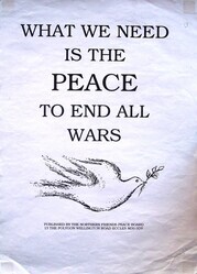Scope and ContentPoster with a drawing of a dove with olive branch and the text: What we need is the peace to end all wars.