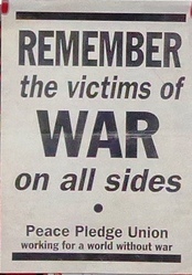 Scope and ContentPoster with the text: Remember the victims of war on all sides. Peace Pledge Union - working for a world without war