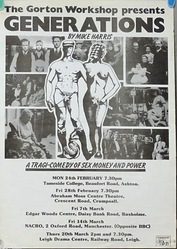 Scope and ContentPoster - The Gorton Workshop presents Generations by Mike Harris. A tragi-comedy of sex, money and power. 24 Feb-20 Mar. 5 performances in various locations.