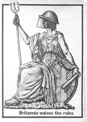 Scope and ContentPoster with an image of Britannia with a face visor and truncheon and the text: Britannia Waives the Rules
