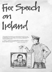 Scope and ContentPoster with a cartoon of an army officers using a man on the television as a puppet and the text: Free speech on Ireland. "The government must promot its own cause and undermine that of the enemy by disseminating its view of the situation, and this involves a carefully planned and co-ordinated campaign of what for want of a better word must regrettably be call psychological operations ... priority ... should be given to teaching officers the methods of carrying out large scale persuasion, and to providing the Psychological Operations specialists and units which will be required" - General Frank Kitson, 1971