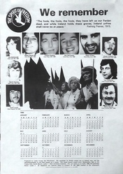 Scope and ContentPoster with images of dead hunger strikers and the text: We remember. "The fools, the fools, the fools, they have left us our Fenian dead, and while Ireland holds these graves, Ireland unfree shall never be at peace." Padraig Pearse, 1915. with calendar for 1982