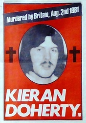 Scope and ContentPoster with an image of Kieran Doherty and the text: Murdered by Britain, Aug 2nd 1981. Kieran Doherty TD