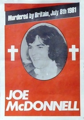 Scope and ContentPoster with an image of Joe McDonnell and the text: Murdered by Britain, July 8th 1981. Joe McDonnell