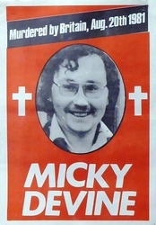 Scope and ContentPoster with an image of Micky Devine and the text: Murdered by Britain, Aug 20th 1981. Micky Devine