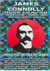 Scope and ContentPostger with an image of James Connolly and the text: James Connolly fesival 9-15 May 2016. The New Theatre, Connolly books, East Essex Street, Dublin 2. Music, poetry, theatre, debate. with list of acts